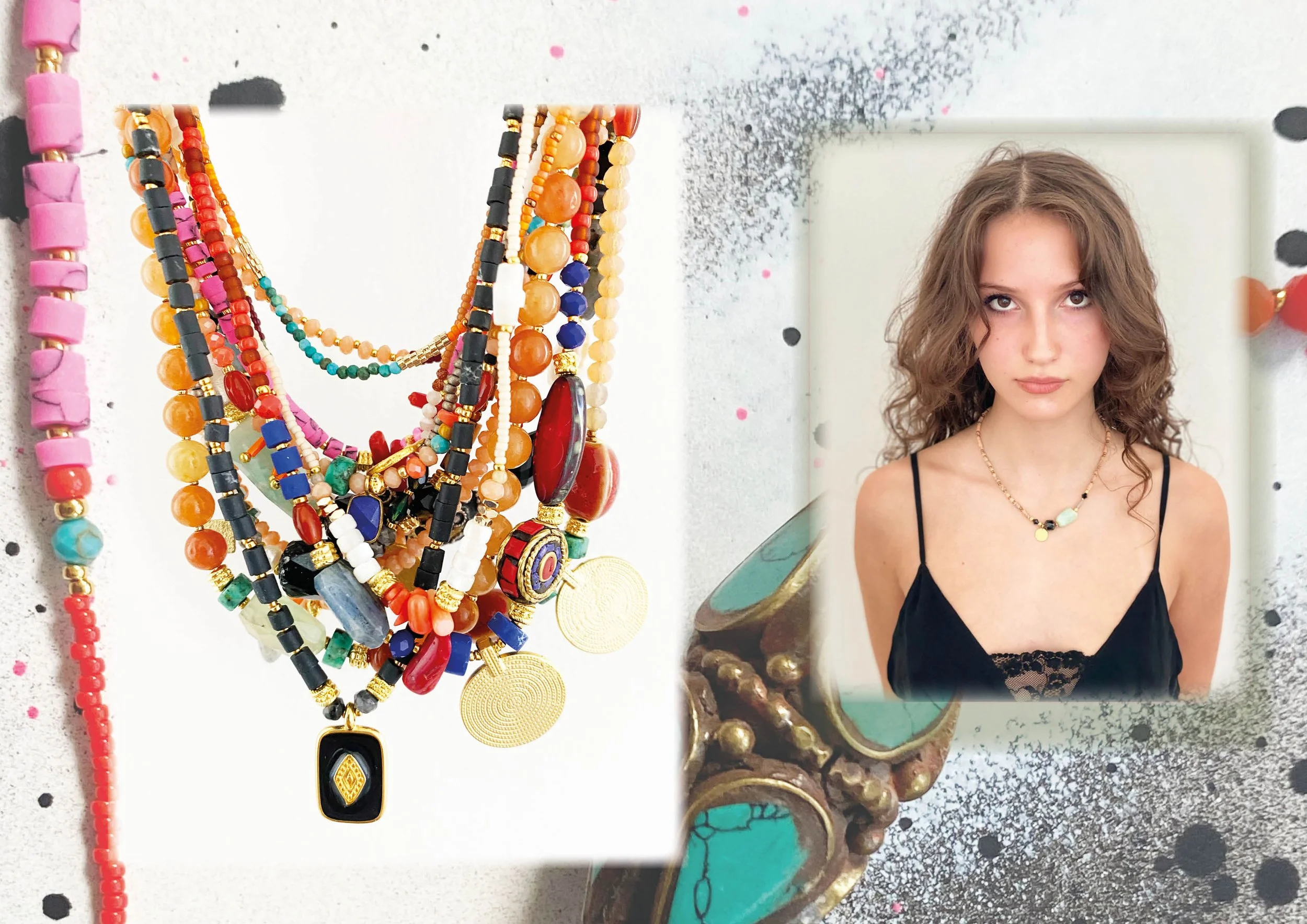 beautiful one-off pieces made from semi precious stones, charms and beads.Delicate, colourful and innovative.