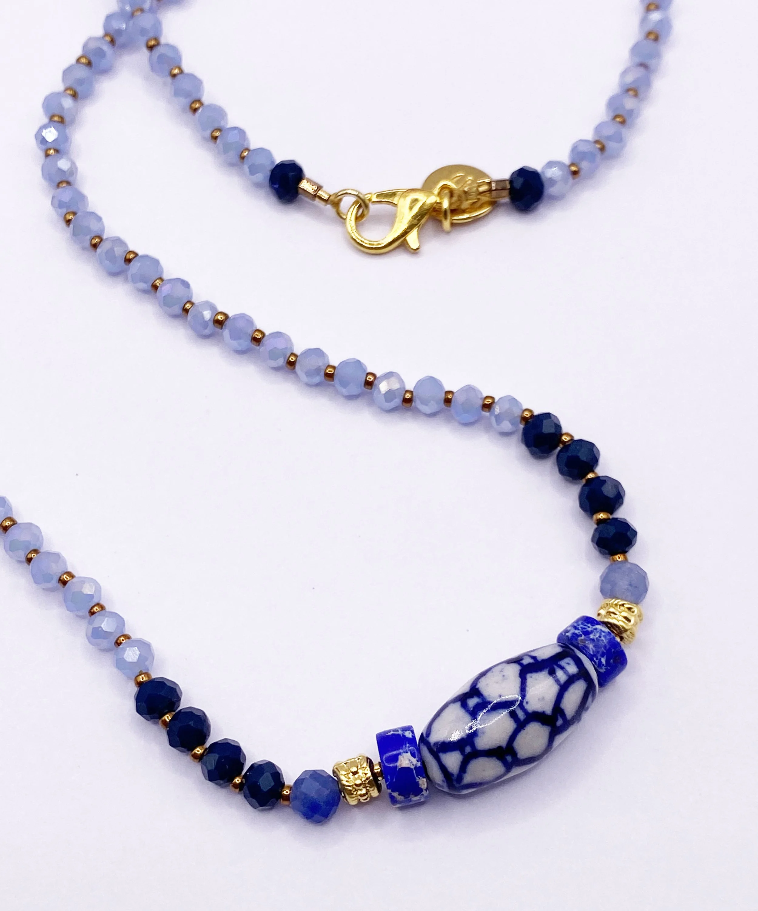 Image 1 of 5 Image 2 of 5 Image 3 of 5 Image 4 of 5 Image 5 of 5 greek dream £45.00 a beautiful ceramic blue and white bead mixed with cobalt jasper wheels, blue agate and crystal beads- 48cm total length Add To Cart Added! a beautiful ceramic blue and white bead mixed with cobalt jasper wheels, blue agate and crystal beads- 48cm total length